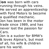 Victor Herzig, Jon’s Father and Frank Masterson, whom Jon regards as his second father, opened up a servicing and sales garage in 1969, servicing major Blue Chip clients for many years. In 2001 Frank opened a bodyshop in Colindale, London named H&M Bodyshop, which Jon was eager to help set up and run. Jon was named as Manager and ran the Bodyshop, which was a complete success.